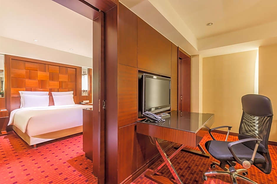 This suite features a separate seating area, providing executive lounge access.